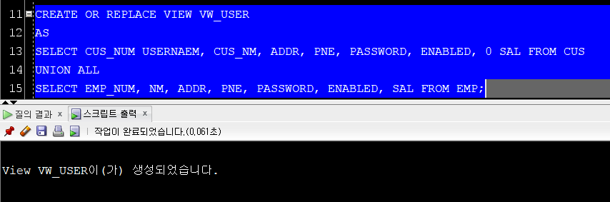 6) DB에서 컬럼추가 / CUS, EMP 에 PASSWORD, ENABLED